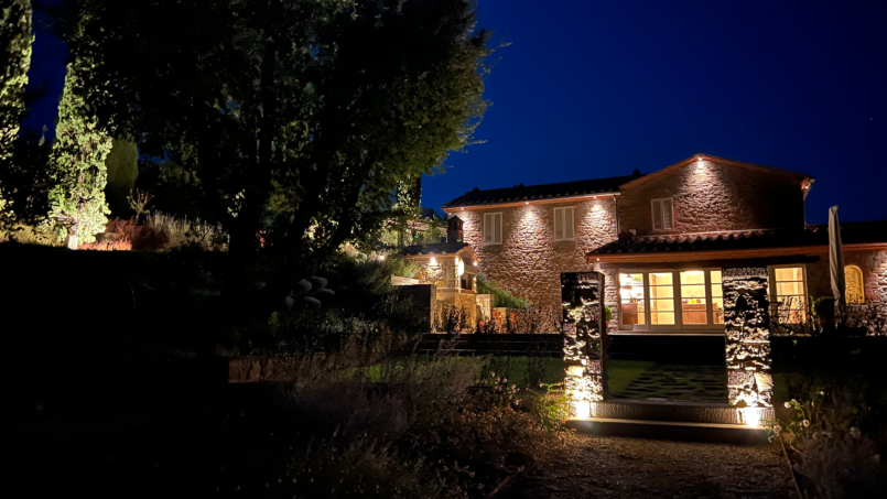 The two-story stone villa features five spacious en-suite bedrooms, all thoughtfully designed with traditional Tuscan architecture, stone and hardwood floors, hand-hewn wooden beams, and interiors filled with natural light. A fully equipped gourmet kitchen opens to warm dining and living areas, ideal for relaxed gatherings and extended stays.